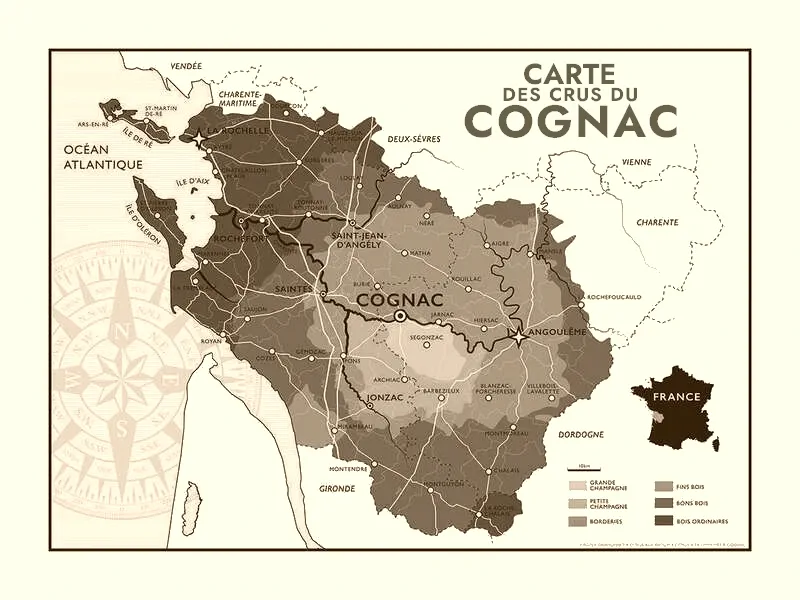 Notre Cognac est issu de la zone de production des « Bons Bois ». Cette appellation, reconnue au sein de la région délimitée du Cognac, se situe principalement en périphérie des crus plus prestigieux de la Grande Champagne et de la Petite Champagne.